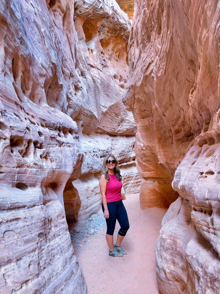This small Nevada state park feels completely different from the other stops on the loop. Narrow clay canyons, cathedral-like formations, and quiet trails make it an incredible contrast to Zion — and far less crowded.