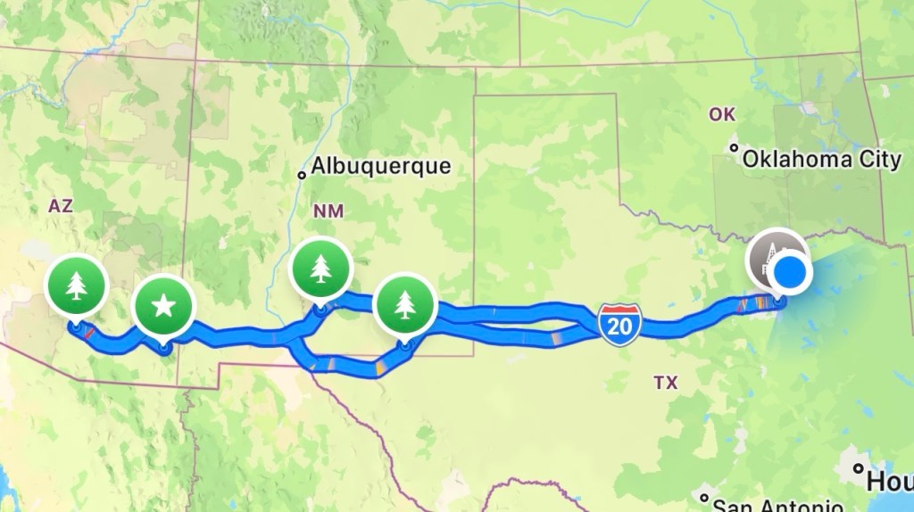 Route: Dallas → White Sands → Saguaro → Chiricahua → Carlsbad → Dallas