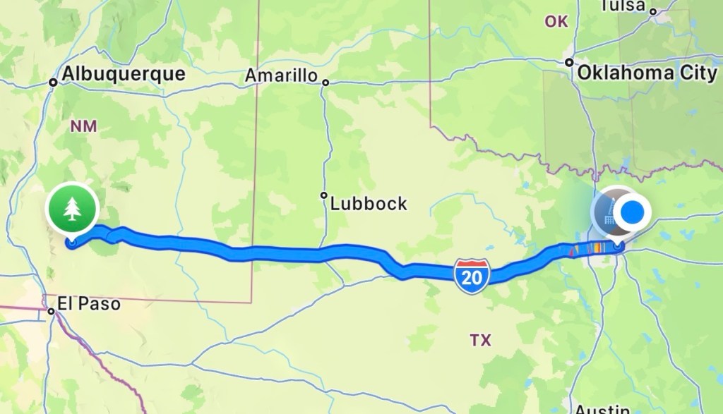- Dallas → White Sands: ~9.5 hrs