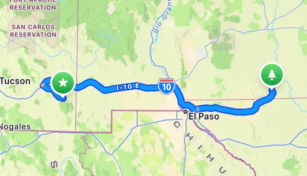 - Tucson → Chiricahua: ~2.5 hrs