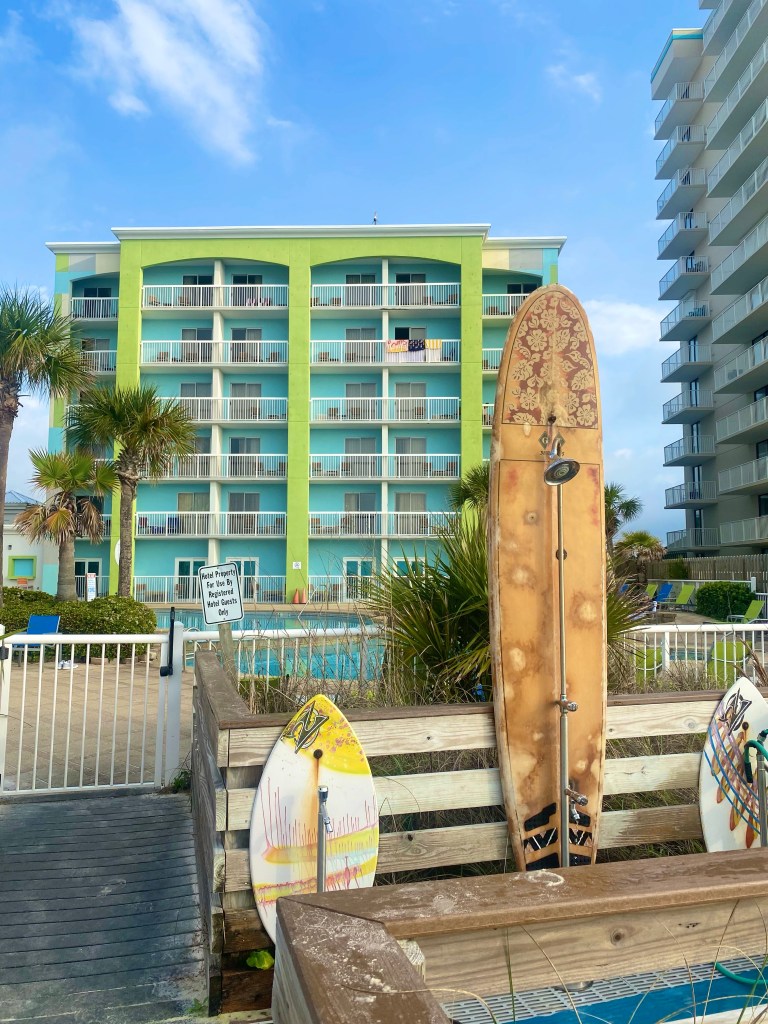 This destination is awesome for families, friends, couples, etc.! We thoroughly enjoyed our stay at the Hampton Inn right on the beach. Overall, we saved about $400 visiting in the spring verses paying the summer rates the hotel charges. We loved those beach views and that free breakfast each morning! Usually when we travel to the beach, we spend most of our time at the beach /pool all day every day – which is always FREE. In the spring, the temperatures are not too hot and muggy to enjoy being outdoors and the water is just warm enough to keep the kiddos entertained!