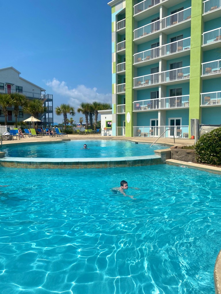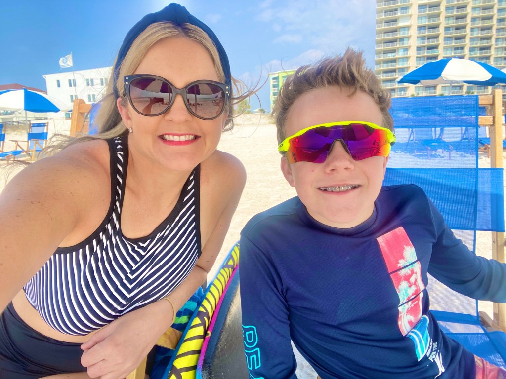 This is our most recent beach vacation, and even though we’ve been traveling to Orange Beach for over twelve years now, we still enjoy each and every visit! This is one of those places that has beautiful white sands, emerald waters, delicious food, and isn’t very crowded if you plan your trip out right! The past two visits to Orange Beach have been in March and April and the crowds were basically non-existent. It looks a little different during those peak summer months, though. We love Orange Beach because we keep it super low-key and chill. You can find us hanging out at the beach, boogie boarding on the waves, warming up in the hot tub, and trying new seafood restaurants each evening. The boys love that we start each day with no major plans!