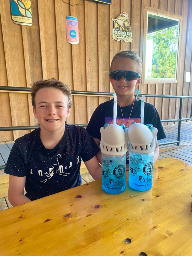 It’s become a tradition of ours to eat at Bubba’s on our first night in Orange Beach! I’m not sure if it’s because we’ve been in the car for 10 hours and this place is one of the first you see when you’re driving through Orange Beach or what. My boys both said that it’s their favorite place that we’ve eaten at here. Jett loves the crab and shrimp plate! I had shrimp, Jake had the kids fish plate, and Jereme had shrimp tacos. We liked the fun décor in the restaurant and the adult beverages! The kids like the non-alcoholic daiquiris, too!