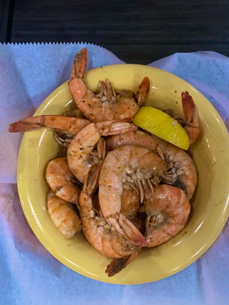 Doc’s was my personal favorite place we ate at on this trip! I really loved the boiled shrimp we had for an appetizer. We also really enjoyed the outdoor games, like corn hole, and listening to live music while we ate and played! Jereme had a fish plate and loaded bake potato that was really good. I had the grilled shrimp plate, which is an Orange Beach favorite dish! And the boys had shrimp and fish. It was all so good! We will definitely return to this restaurant next time we’re at the beach!