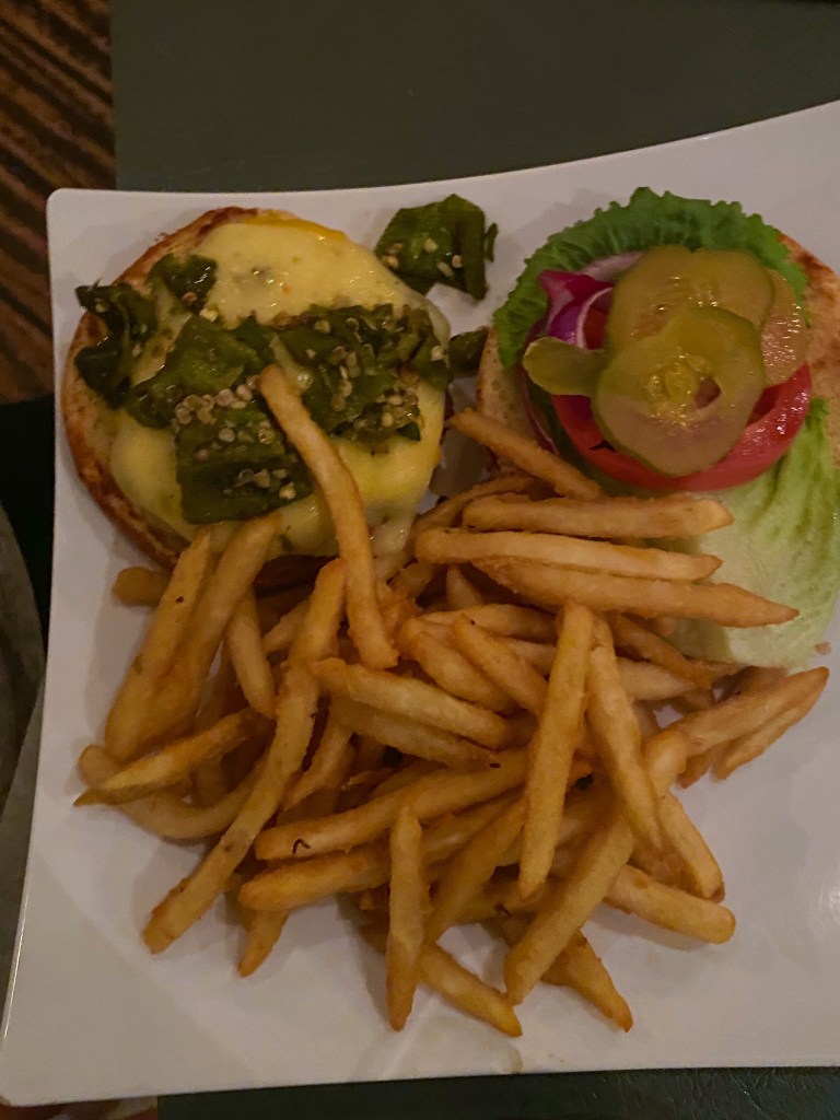 Shrimp, crab, and artichoke dipFilet medallionsGreen chili cheeseburger
