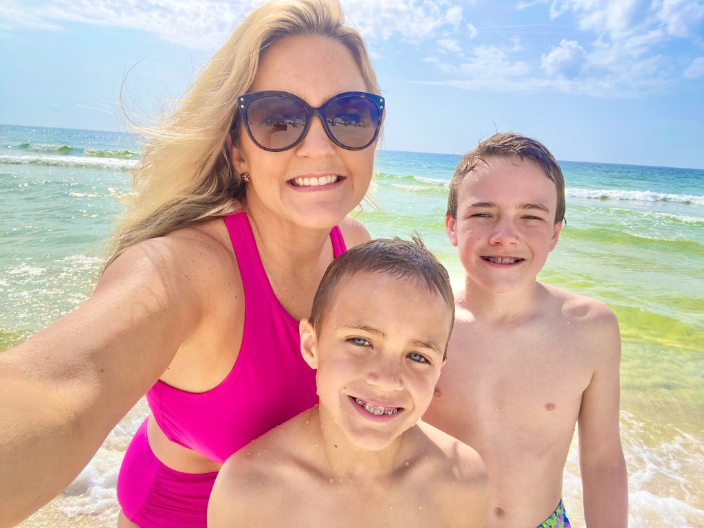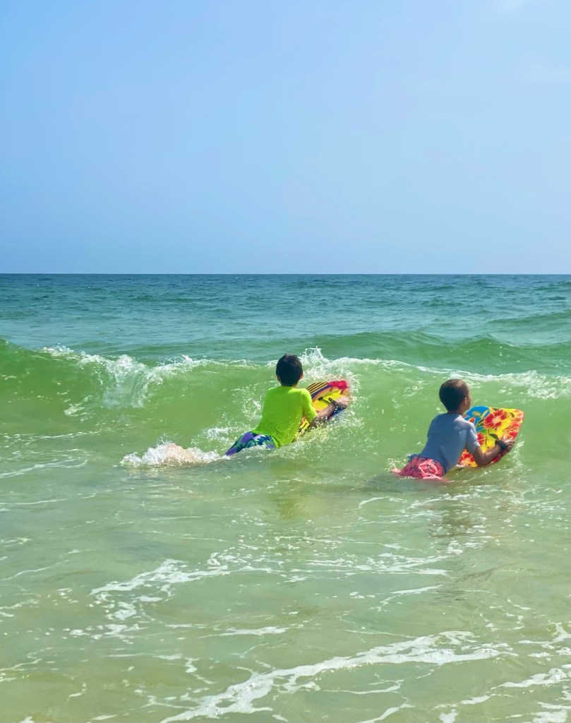 This is our most recent beach vacation, and even though we’ve been traveling to Orange Beach for over twelve years now, we still enjoy each and every visit! This is one of those places that has beautiful white sands, emerald waters, delicious food, and isn’t very crowded if you plan your trip out right! The past two visits to Orange Beach have been in March and April and the crowds were basically non-existent. It looks a little different during those peak summer months, though. We love Orange Beach because we keep it super low-key and chill. You can find us hanging out at the beach, boogie boarding on the waves, warming up in the hot tub, and trying new seafood restaurants each evening. The boys love that we start each day with no major plans!