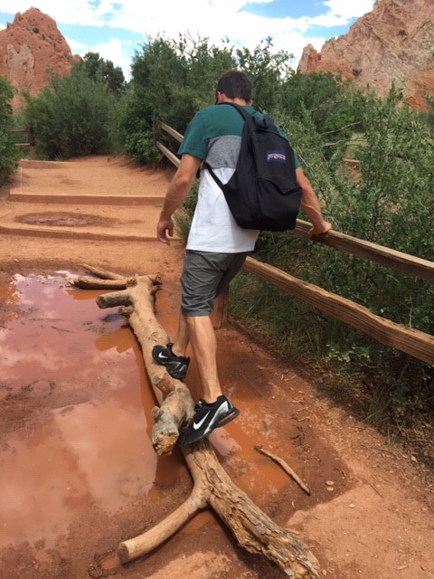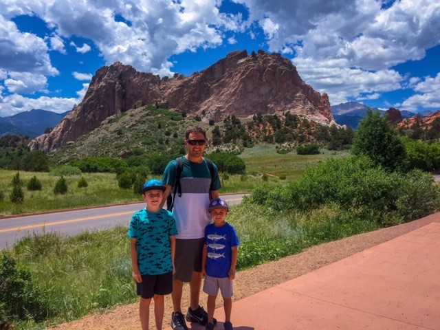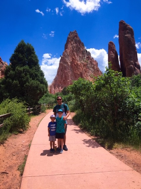 Jereme and the boys on the walk to the Garden of the Gods Park
