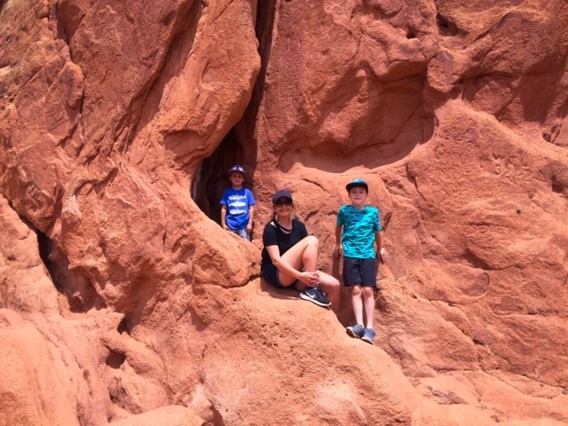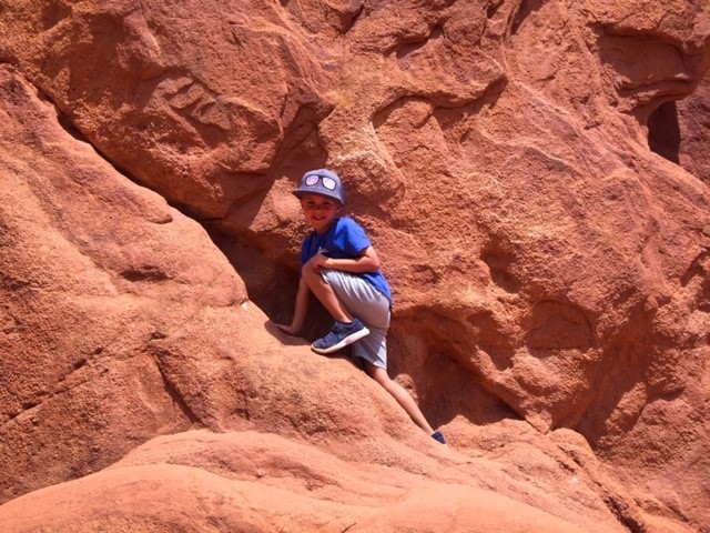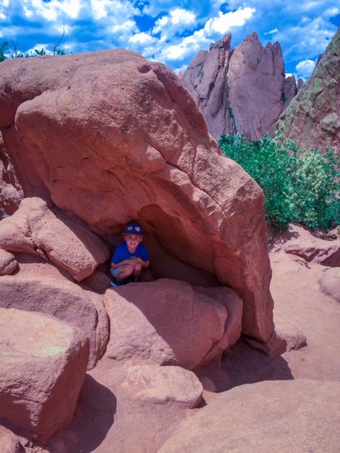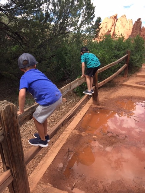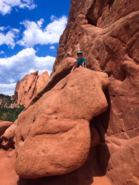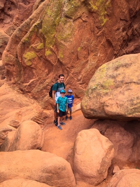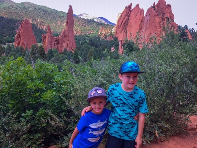 Hey y’all! It’s Jasha here again. I thought I would blog about our day trip to the Garden of the Gods in Colorado Springs, CO. We’ve had quite the adventure! So, for those of you that don’t know, we left for an 8 day vacation on June 23rd and headed to South Dakota for the week. Our trip unexpectedly turned into a 12 day trip! On our way back to TX, our Yukon lost all engine power due to a problem with the computer system. We ended up stuck in Cody, WY for 3 days without a car. Finally, it was fixed… or so we thought. When we made it 8 hours down the road, on the outskirts of Colorado Springs, the computer system had another problem and we lost all engine power again. We were literally right at an exit and were able to coast over to a fabulous hotel, called My Place Hotel. The staff was amazing and got us a great rate. The rooms were awesome, with full kitchens and an option to have breakfast delivered to your room in the morning for you to cook. It also had a grocery selection which was helpful for us since our vehicle wasn’t running. Check it out if you’re ever out in CO Springs! Anyway, my dad is amazing and came to the rescue with a truck and trailer to help haul us home. He lives in the same town as us, so it took him 11 hours to drive up to Colorado. So, we decided to take the boys to do something fun for the day while we waited for him. I had been to the Garden of the Gods when I was a kid with my family and then Jereme and I went up there with his family about 15 years ago. So, it had been a really long time since I was last there. And let me just say, my boys LOVED it! I have never heard them ask to have their picture taken so many times. So, if you have little boys, or girls, that love the outdoors and enjoy climbing over cool rock formations, then this is the place to go! Oh, and it’s FREEto visit!