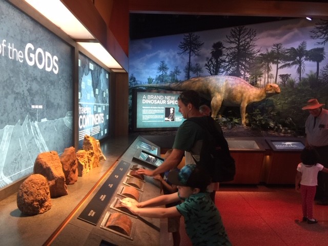 We explored the park for about 3 hours and then we got hot and tired. We decided to venture back to the visitor center for some food and to peruse the exhibits. We had a wonderful late lunch at the cafe. The boys had yummy cheese pizza and I had a tuna sandwich. Jereme had a turkey avocado sandwich. It was a little pricey, I think we spent about $40 on food , but overall we enjoyed what we ordered! Then we walked around the exhibits and ended our visit at the souvenir shop where little Jake spent ALL of his birthday money! Haha! Below are a few pictures from the visitor center.